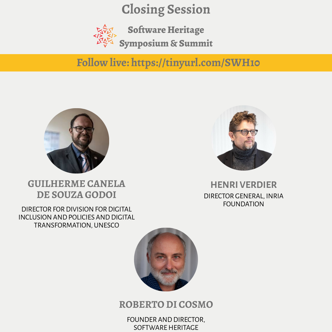 Final remarks at the Software Heritage Symposium. Wrapping up 10 years of preserving the software commons with: UNESCO • Inria Foundation • Roberto Di Cosmo