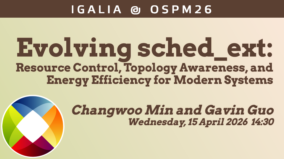 IGALIA @ OSPM26 Evolving sched_ext: Resource Control, Topology Awareness, and Energy Efficiency for Modern Systems Changwoo Min and Gavin Guo Wednesday, 15 April 2026 14:30