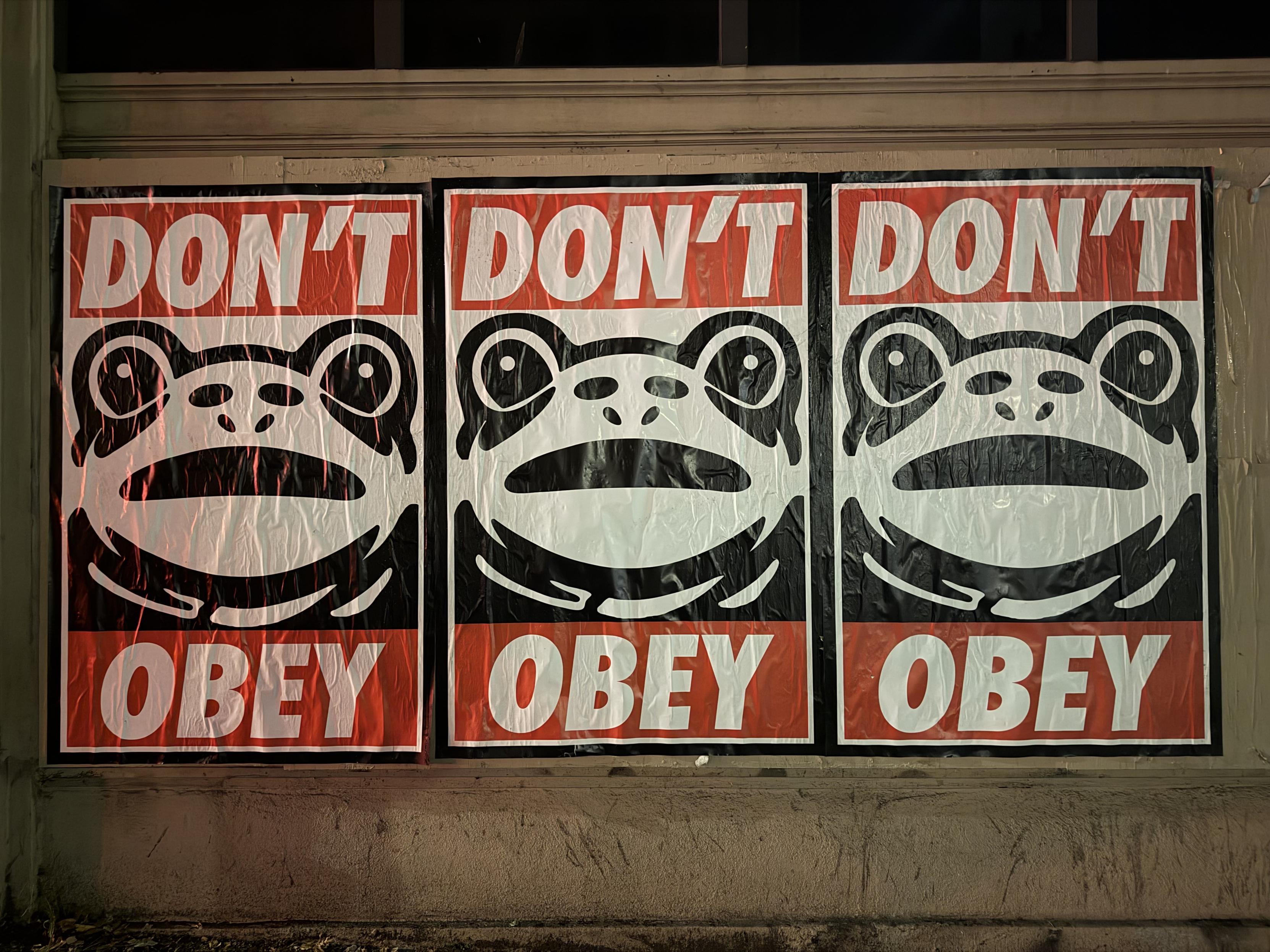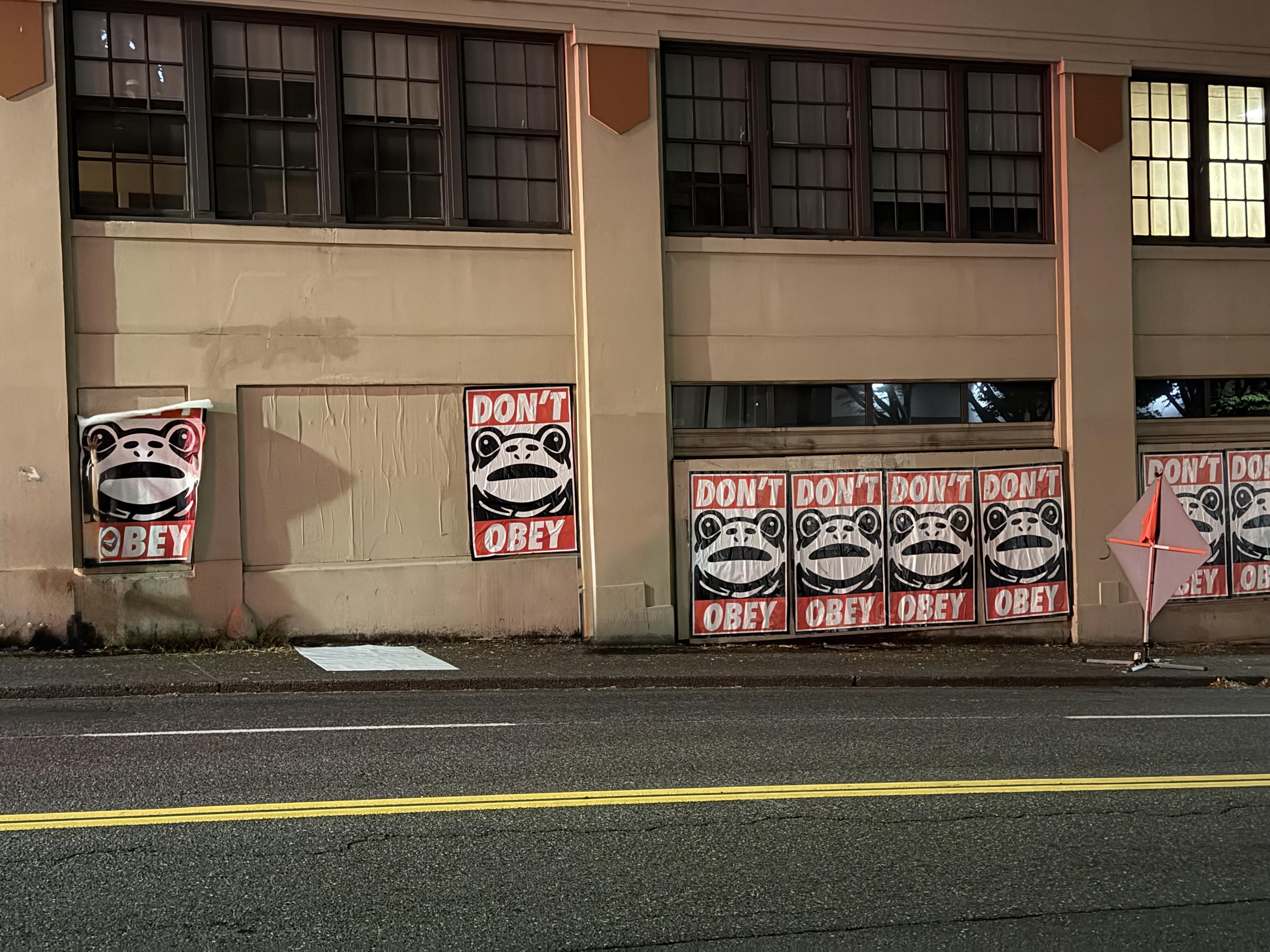 I've seen an AI parody of the Obama "Hope" poster going around featuring #PortlandFrog and I decided that I should make a non-AI version (left). This is also under #cc0 ( #publicdomain ) so feel free to use it however you wish.